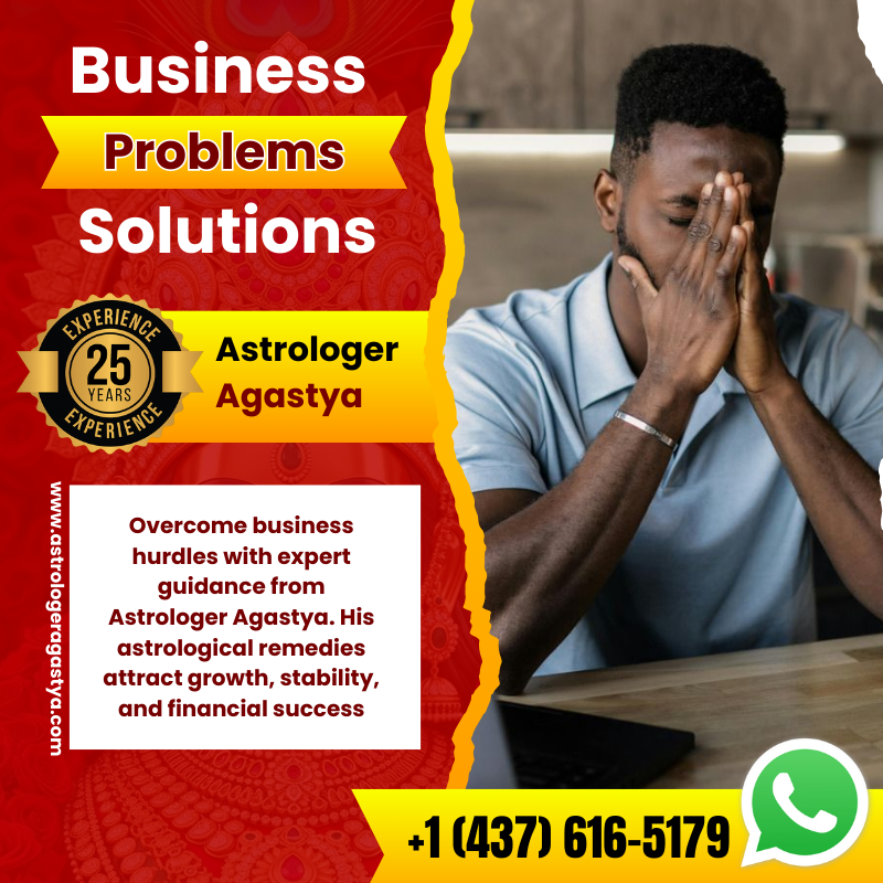 For entrepreneurs and professionals facing setbacks or stagnation in their ventures, Astrologer Agastya is known as the best business issue solution astrologer in Canada. With years of experience in business astrology and Vedic wisdom, he has helped countless business owners overcome financial hurdles, partnership problems, and market challenges. His astrological insights provide clarity and direction, turning struggling ventures into thriving successes. He provides customized remedies, including gemstone recommendations, yantras, prosperity mantras, and specific pujas to attract wealth, stability, and growth into your professional life.